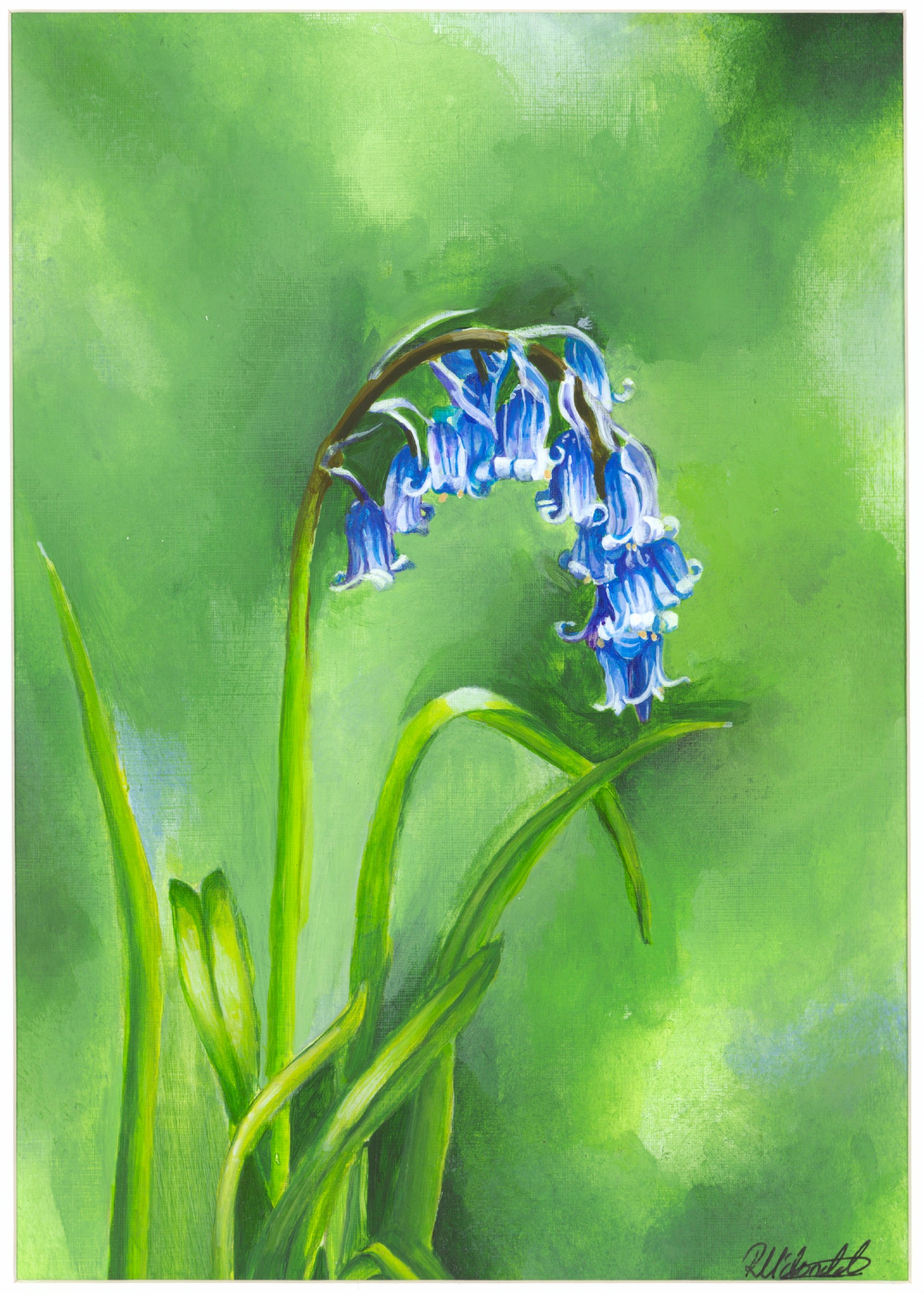The Native British blue Bell, a truly beautiful species that is endangered in the wild. This original artwork is truly unique, created through years of practice and careful observation this vibrant piece isolates a single bluebell on a luscious green backdrop highlighting the natural beauty of the wild. This acrylic painting is A4 and framed in A3 to really give that wow factor when hung.